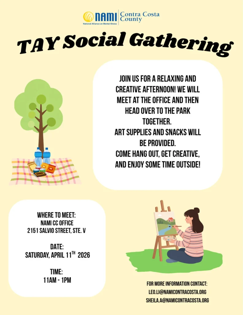 Calling Transitional Age Youth (ages 16-26) to join us for a relaxation and creative afternoon at NAMI Contra Costa!