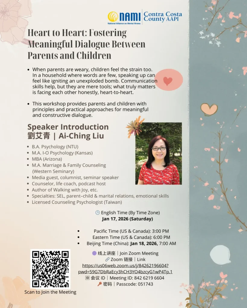 NAMI CC’s AAPI Monthly Seminar/NAMI CC中文部月度讲座