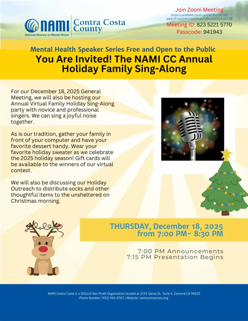For our December 18, 2025 General Meeting, we will also be hosting our Annual Virtual Family Holiday Sing-Along party with novice and professional singers. We can sing a joyful noise together.