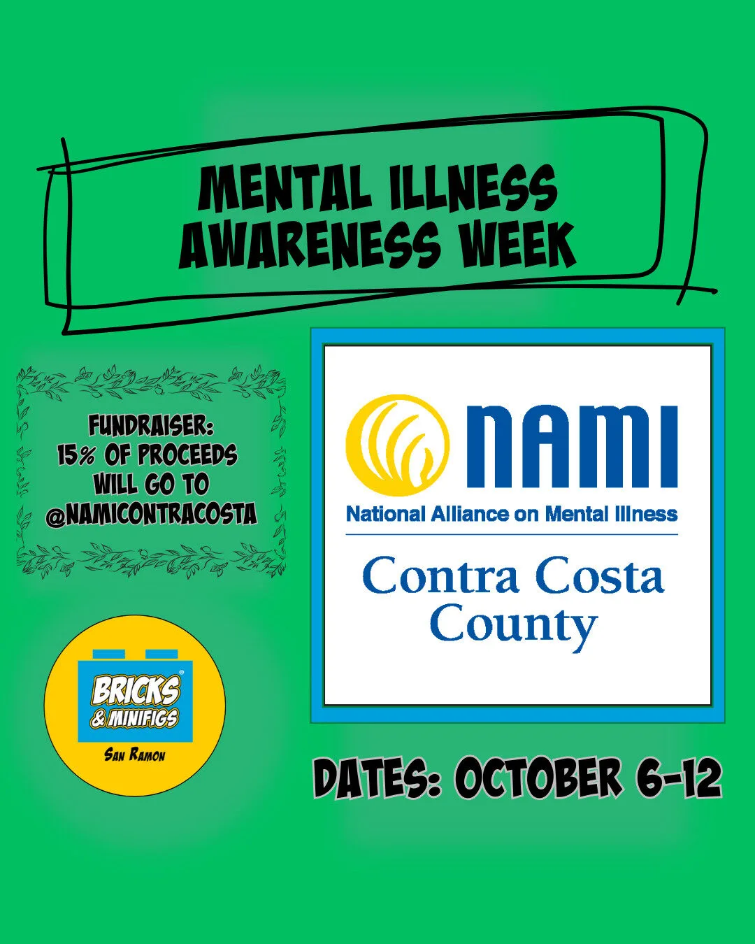 Mental Illness Awareness Week takes place on October 6-12! Bricks and Minifigs, San Ramon, will be donating 15% of their proceeds to NAMI Contra Costa that entire week!