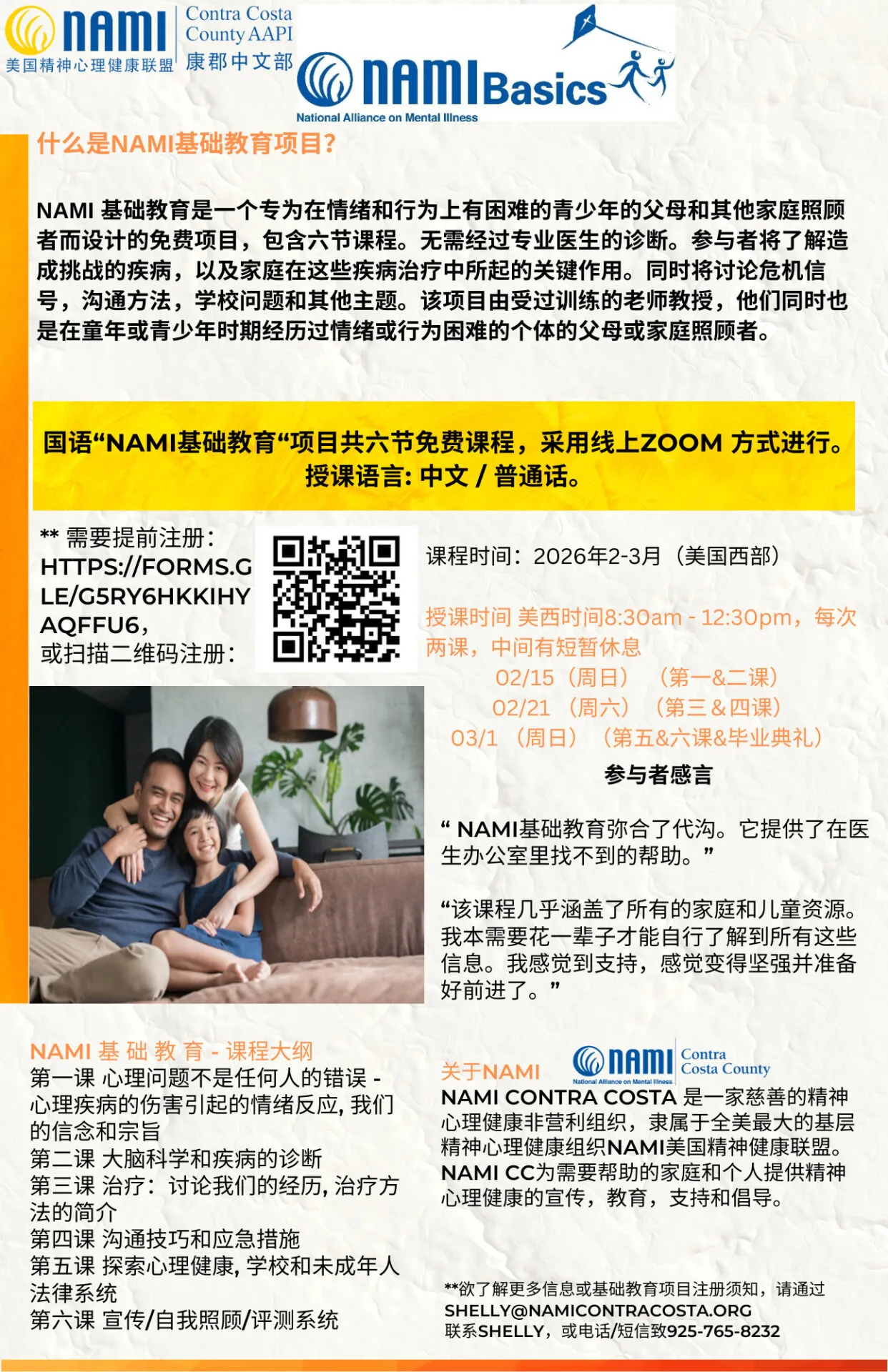 国语”NAMI基础教育”项目共六节免费课程,采用线上ZOOM 方式进行。